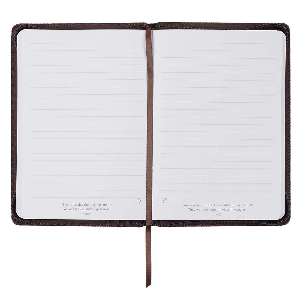 The Blessed Man Brown Faux Leather Classic Journal with Zipped Closure states that the man who chooses to place his trust the Lord will be blessed and will have nothing to fear when he faces adversity. What a great encouragement for any man in any stage of life!