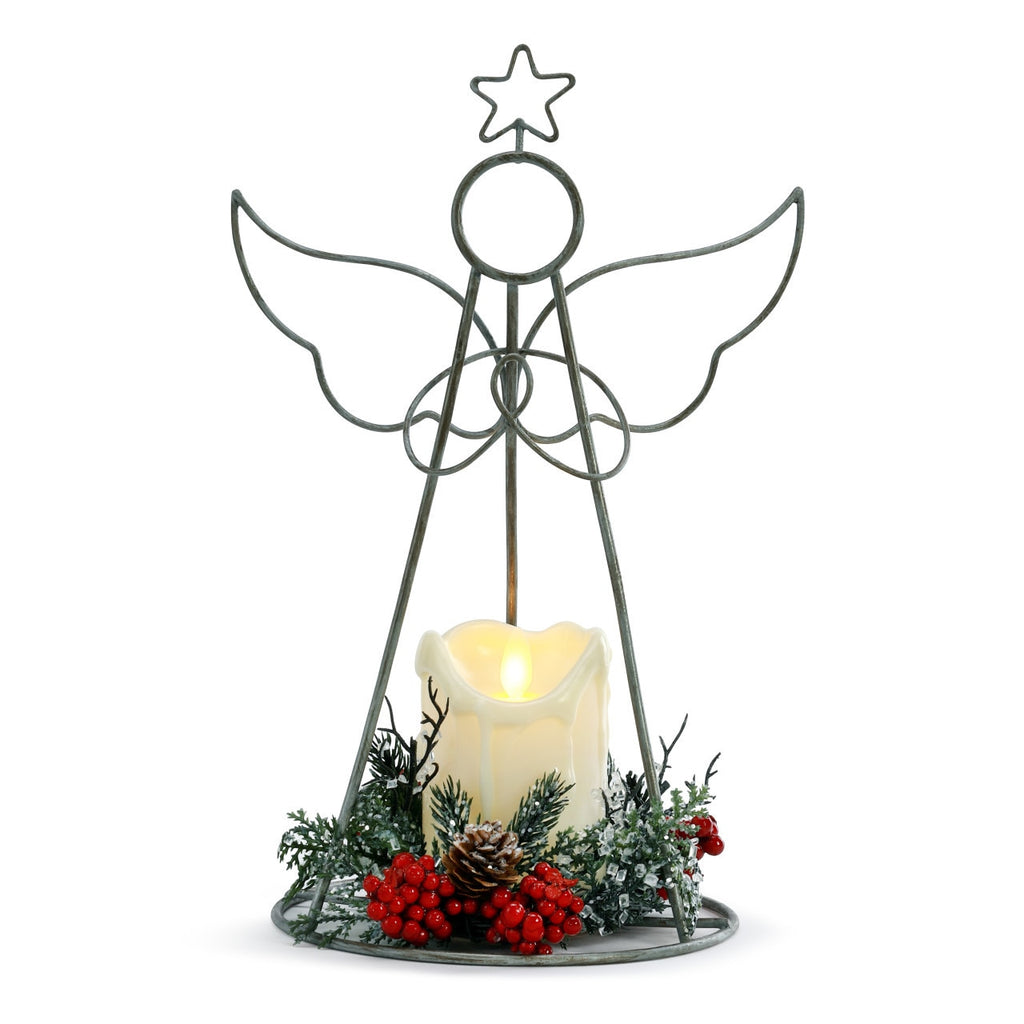 The Lit Wire Angel with LED Candle Figure is a warm holiday-themed piece to add to any home this Christmas season. This beautiful wire frame angel figure features a beautiful LED candle with winter holly and pine cone decorations throughout. Designed with a spirited shape and festive detailing, this piece will coordinate well with all types of home décor. A part of the Holiday Home Collection, this figure is ideal for reminding loved ones of the true spirit of Christmas. Perfect for gifting to anyone on your list or displaying around your own home, this LED figure is certain to make a heartfelt statement this season.