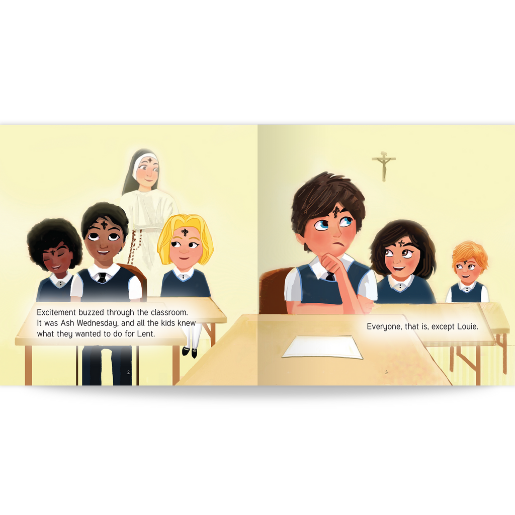 When little Louie sees his classmates giving something up for Lent, he’s stumped on what to do himself. While the other students undertake their Lenten resolutions, he embarks on a different course of action - giving of himself to support his classmates in their sacrifices.