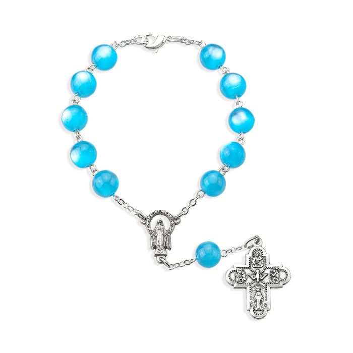 These quality glass auto rosaries are one of our customers favorites. Quality at affordable pricing, and available in 6 colors. Our Baby Blue 8 mm Glass Auto Rosary is smooth to the touch, with a 'Mary' center, a four-way cross, and a clasp for easy hanging. Makes a great gift for any occasion, such as Birthdays, Father's Day, Mother's Day, Ordinations, Easter, or Christmas.