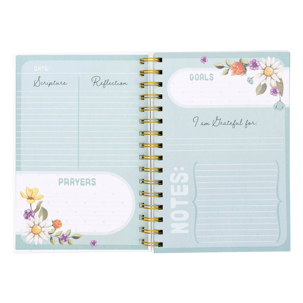 This journal is designed to guide your spiritual journey. It includes 196 lined pages with structured prompts and relevant Scripture on each page. The wiro binding allows it to lay flat, and its size is 5.813" x 8.375", making it easy to carry.