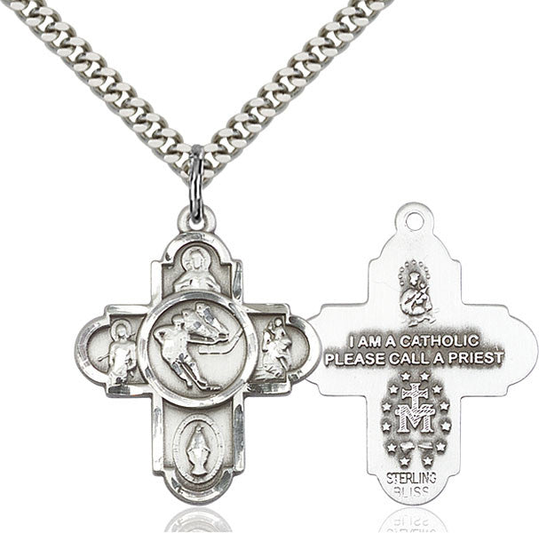 Sterling Silver 5-Way Ice Hockey Pendant